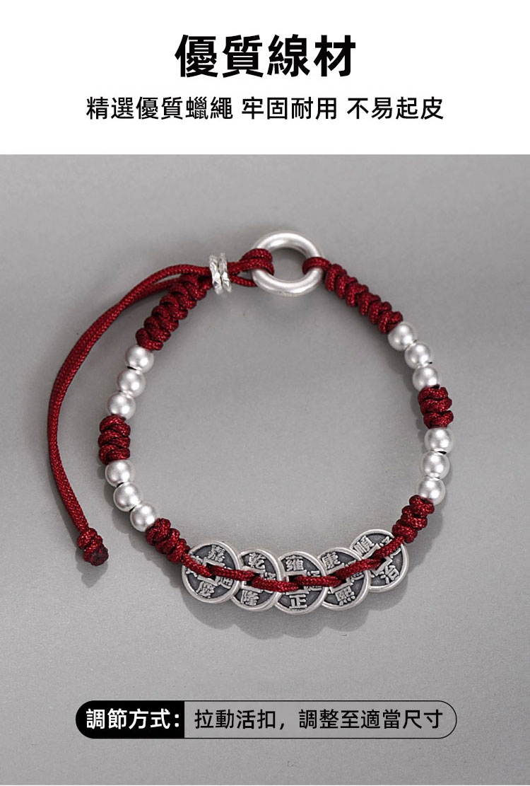 招財五帝錢銀手鍊,色澤溫潤自備高級質感,簡約設計不挑風格,精緻又舒適~