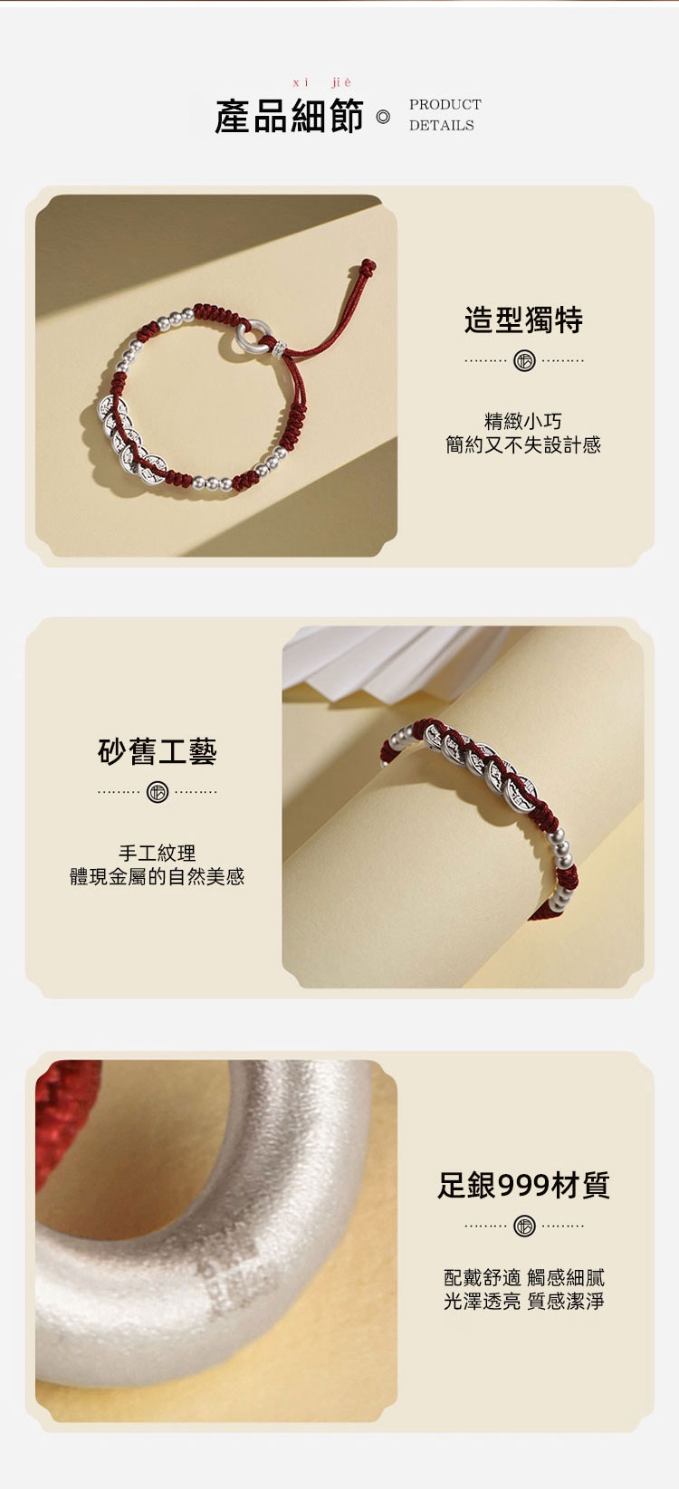 百年工匠手工雕琢,紋路清晰立體超有質感,每一處細節都藏著匠心~ 純銀材質質色澤溫潤細膩,上手觸感舒適不硌手,久戴也無負擔。