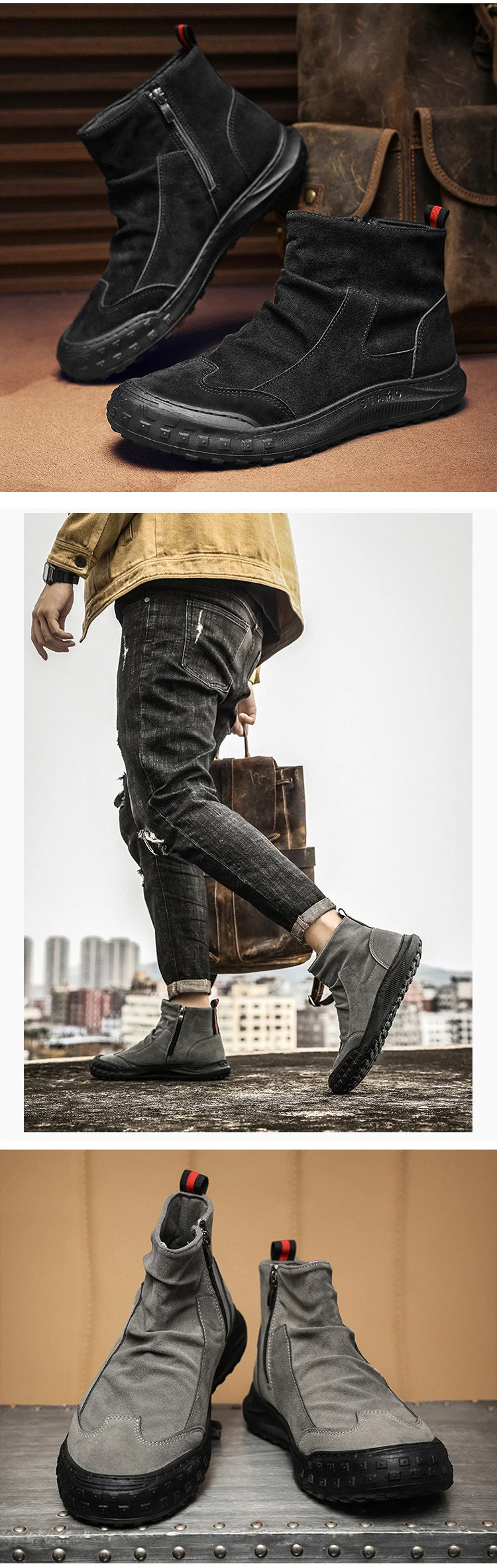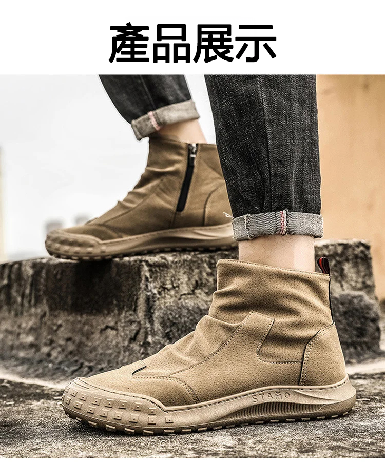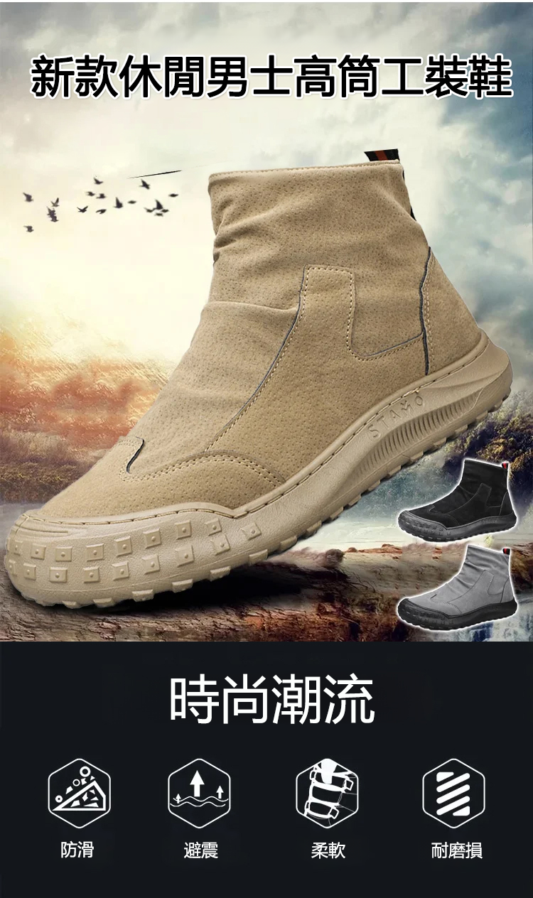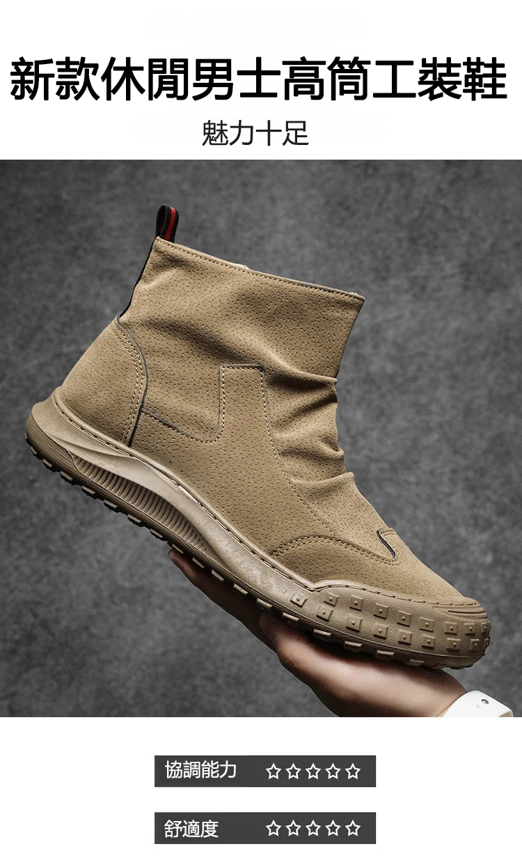【零下10度鎖溫不凍腳】休閒男士高筒工裝鞋,真皮布料,防滑橡膠大底,防水透氣也顯瘦